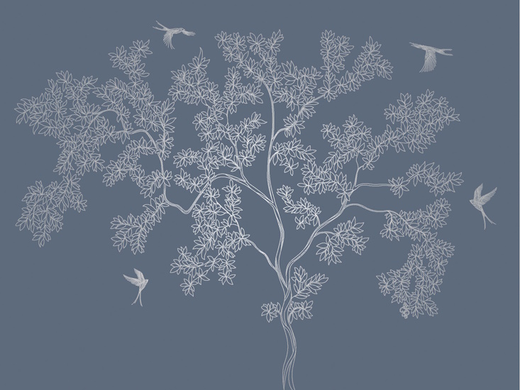 Фреска на флизелиновой основе с покрытием водно-дисперсионной краской. Роспись изображения выполняется золотым, серебрянным или платиновым пигментами