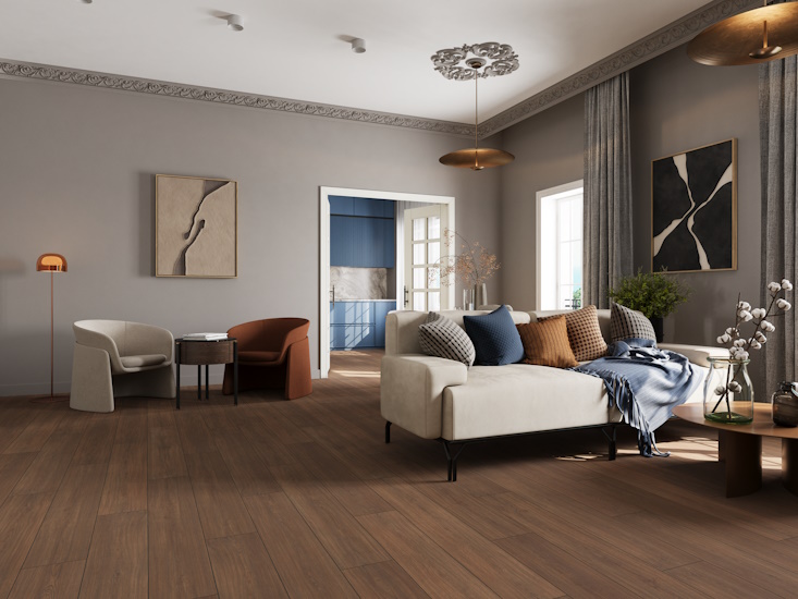 Ламинат Eversence EVER SENSE 2025+ 8/34 Aqua+ Classic 4V арт. EL2153 Дуб Каселла коричневый 8мм.