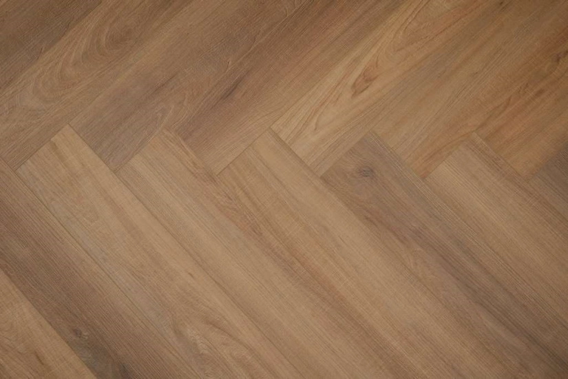 SPC каменно-полимерная плитка толщиной 4,5мм., укладка «английская ёлочка», имитация натурального дерева, 100% влагостойкий и экологичный, подавляет шум от ходьбы и ударов от упавших предметов, подходит для полов с подогревом, ударопрочный, антискользящий, износостойкий, антистатичный