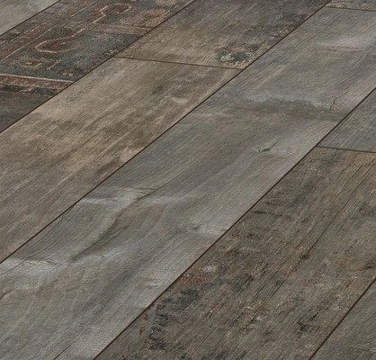 Имитация пола из массивной древесины. Благодаря ярко выраженной текстуре натурального дерева и за счёт V-образного паза панели выглядят естественно и практически неотличимыми от старых добрых половиц