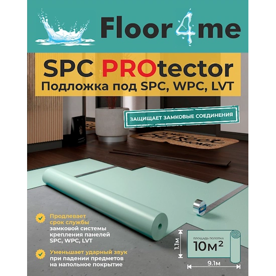 Ламинат Solid Подложка арт. Подложка рулонная SOLID Floor4me PROtector, 1 мм., зеленая, под замковый LVT и SPC