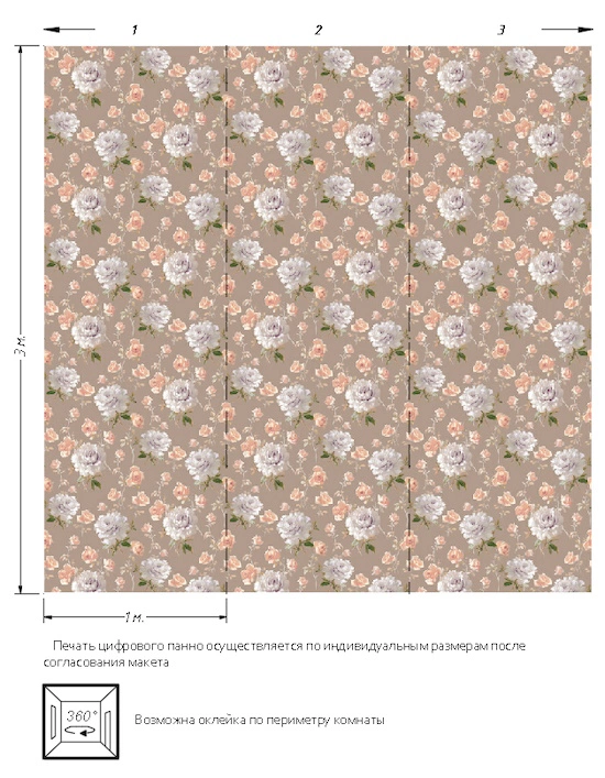 ширина: 3м | длина: 3м | подгонка рисунка: панно из 3-х полотен