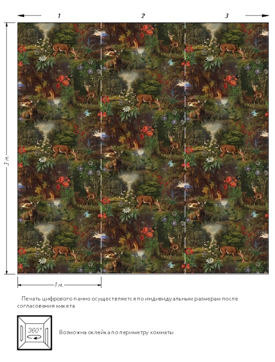 ширина: 2м | длина: 3м | подгонка рисунка: панно из 2-х полотен