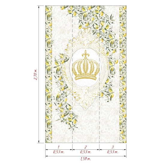 ширина: 1.59м | длина: 2.7м | подгонка рисунка: панно из 3-х полотен