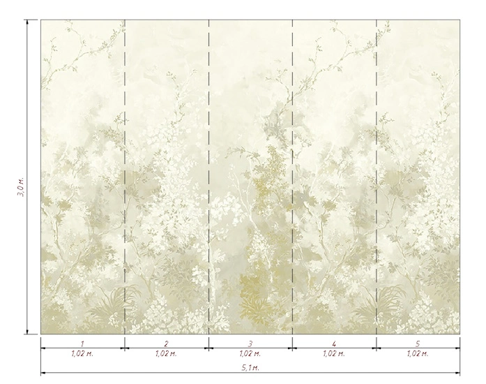 ширина: 5.1м | длина: 3м | подгонка рисунка: панно из 5-ти панелей